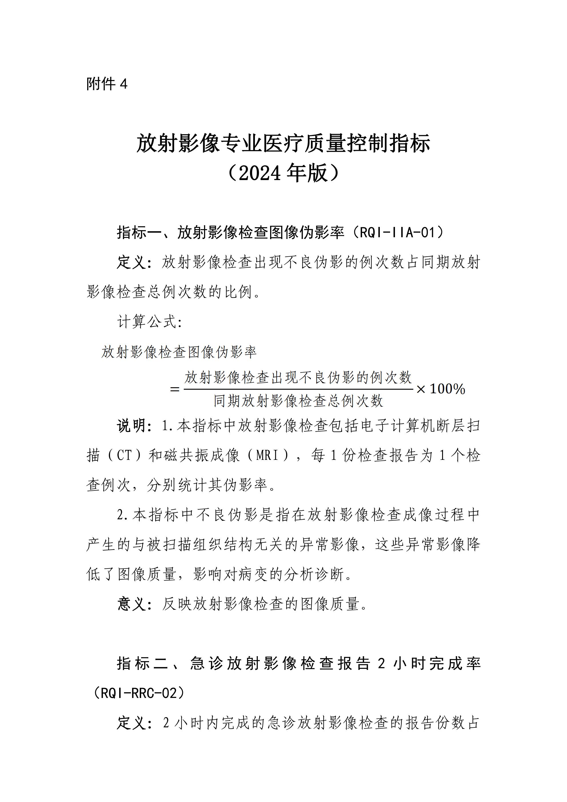 其中,放射影像专业医疗质量控制指标(2024年版)的具体内容为: