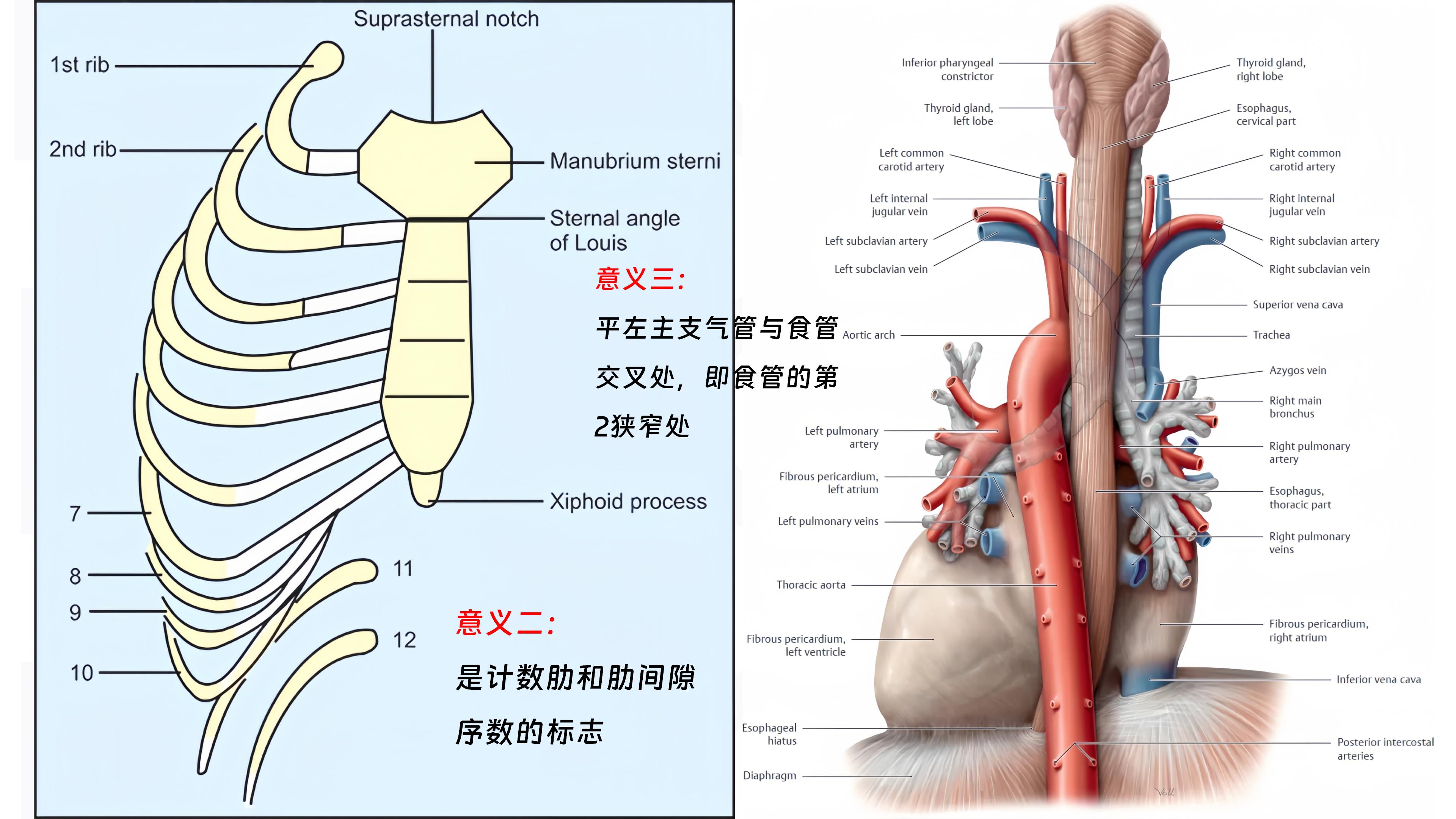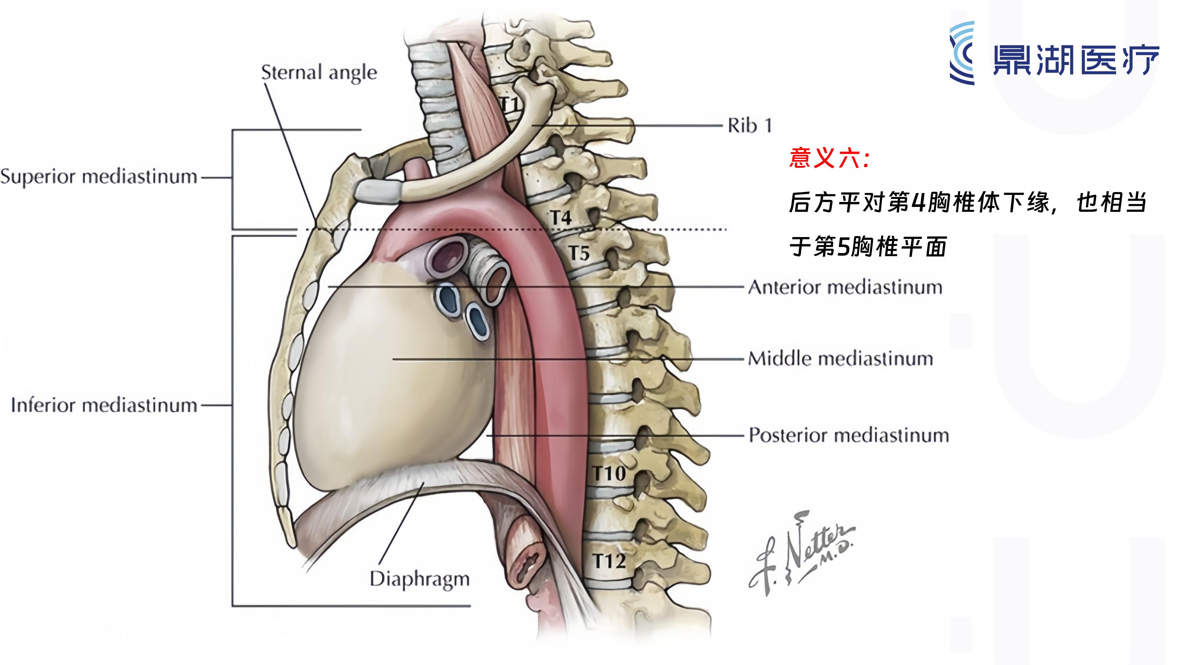 13.是上、中纵隔的分界平面,后方平对第4胸椎体下缘;