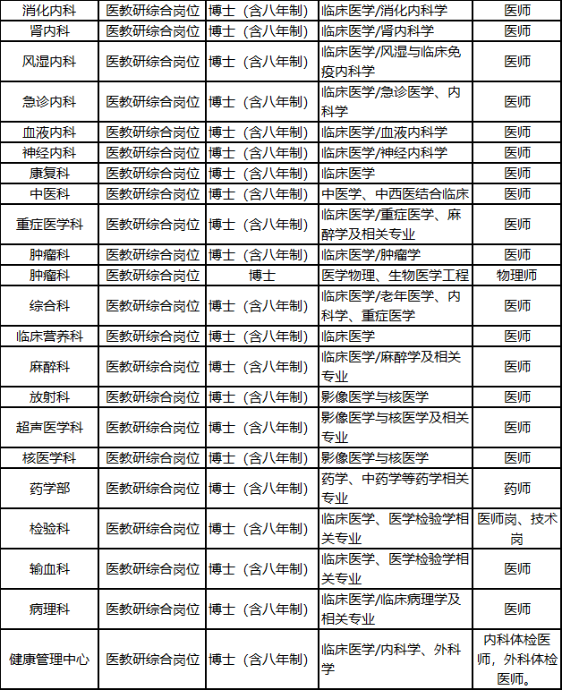 5.本年度暂无降低录用标准的岗位,面试前如有可调剂岗位,医院仅在初筛通过人员中征集意见,请所有递交简历的博士做好就业预案。