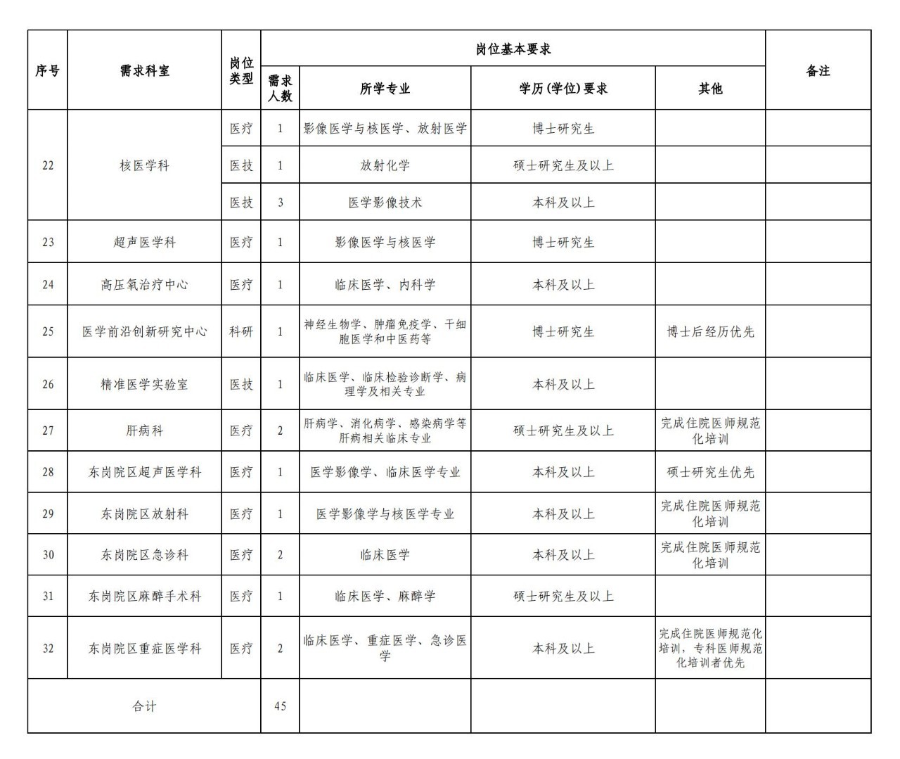 1.医疗相关专业,本科及以上学历,第一学历为普通高等学校本科,硕士研究生取得医师资格证和规范化培训证书;本科毕业生年龄在25岁以下,硕士研究生年龄在35岁以下,博士研究生年龄可放宽到40岁(特别优秀的博士毕业生第一学历可适当放宽)。