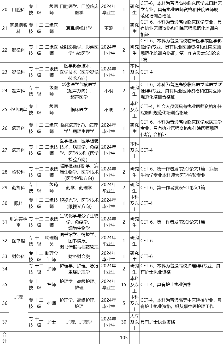 为进一步优化医院人员队伍结构,提升公共服务水平,南通市第三人民医院2024年第一批面向社会公开招聘105名备案制工作人员(工资、“五险一金”待遇参照编内人员)。现将有关事项公告如下: