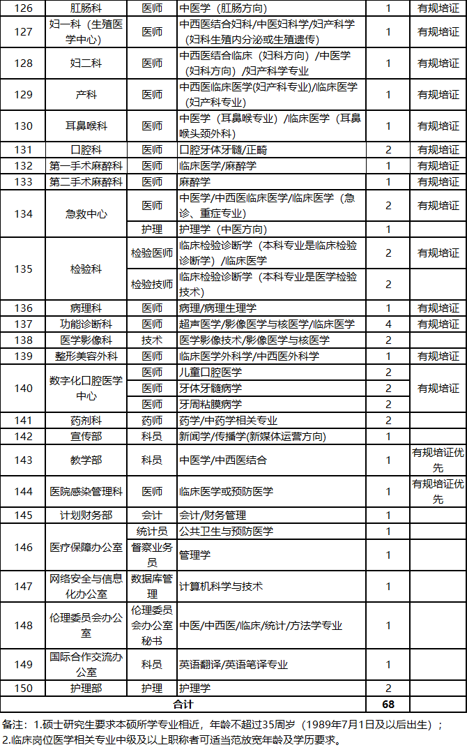 (一)招聘名额:硕士研究生及以上68人。(详见附件)
