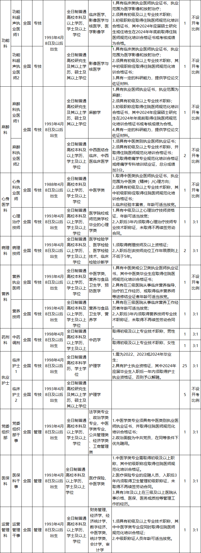 根据医院业务发展对人才的需要,经医院研究,决定面向社会公开招聘编外工作人员,现将招聘有关事项公告如下: