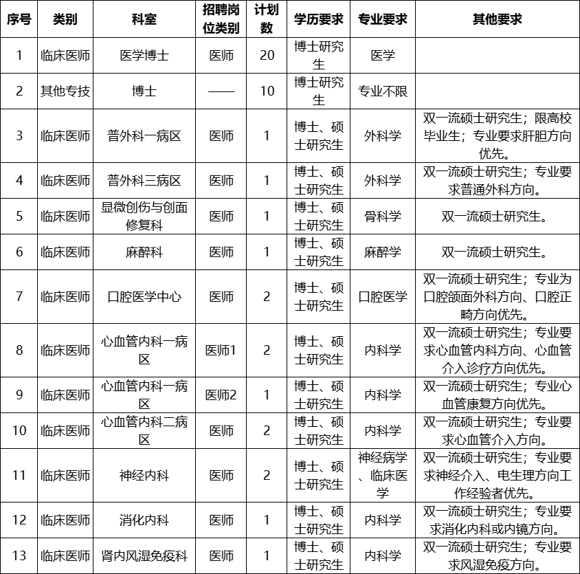 (1) 应聘人员的学历(学位)必须为国家承认的学历(学位)。出国留学人员学历应通过教育部相关部门的学历认证。以上学历学位证书(学历认证)必须于2024年7月31日前取得。岗位要求的住院医师规范化培训合格证(或成绩合格证明),必须于2024年12月31日前取得。未在规定时间内取得,则取消考试或聘用资格;