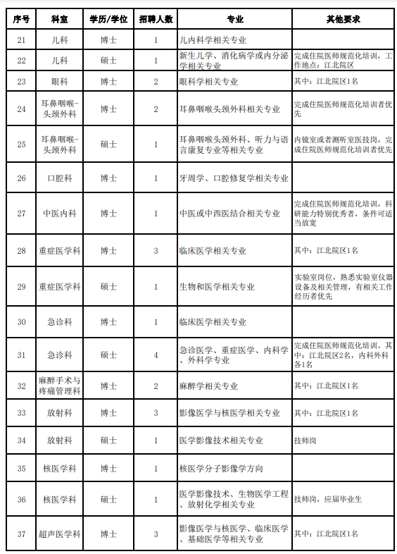 6、医师系列岗位原则上应取得医师资格证书或通过全国医师资格考试(境外取得博士学历/学位,临床医学八年制博士除外)。