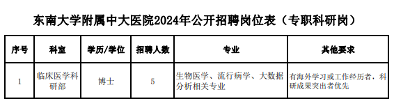 12、博士岗位,优先录用已出站博士后,应届博士原则上应进入医院博士后工作站进行科研培训,博士后期间待遇参见博士后招聘公告,期满出站推荐申请东南大学事业编制和高级职称聘任。