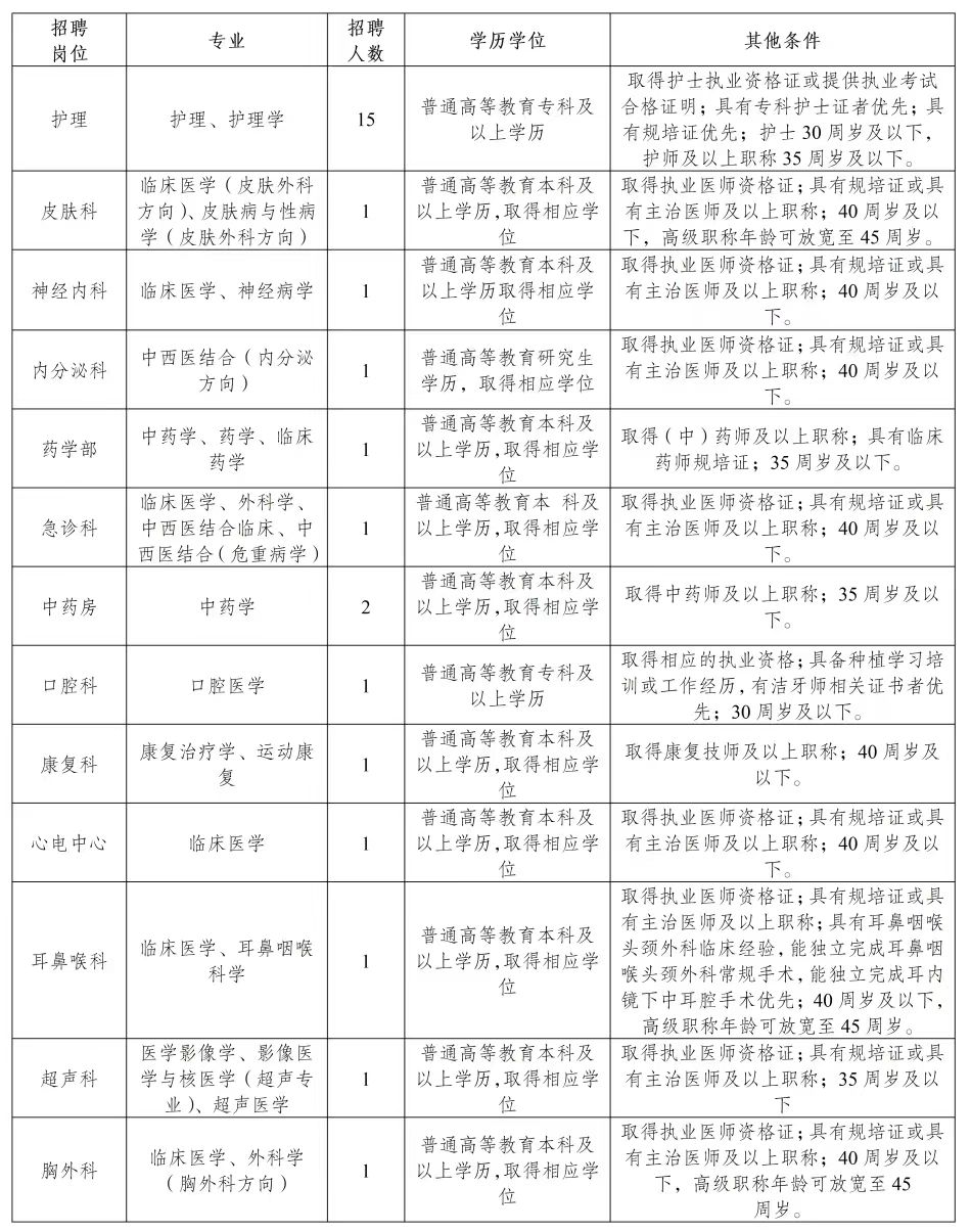 为加强医院人才梯队建设,满足医院业务发展需要,按照“公开、平等、竞争、择优”的原则,我院将面向社会公开招聘工作人员39名。现将有关事项公告如下: