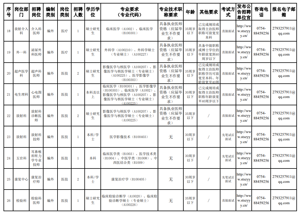详见《汕头市中医医院2024年编外人员招聘岗位表》(附件1)。