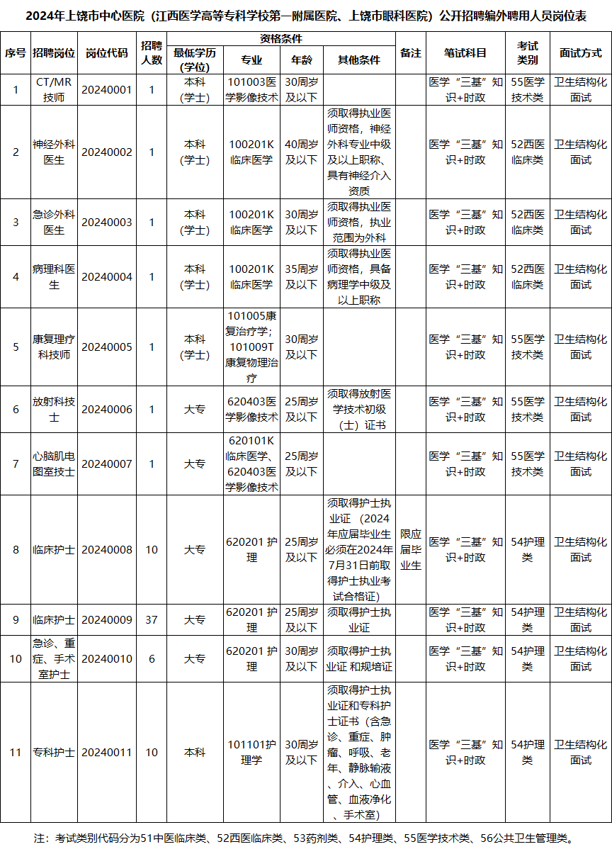 本次招聘编外聘用人员计划共70名,具体岗位及资格条件详见《2024年上饶市中心医院(江西医学高等专科学校第一附属医院、上饶市眼科医院)公开招聘编外聘用人员岗位表》(附件1,以下简称《岗位表》)。