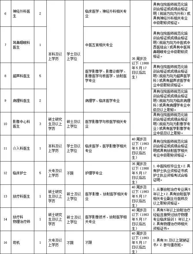 医院科室设置齐全,技术力量雄厚,中医优势突出,专科特色明显,综合服务能力较强。因业务发展需要,依据《齐齐哈尔市中医医院招聘管理制度》,结合医院岗位需求实际,现面向社会公开招聘编外工作人员,具体公告如下: