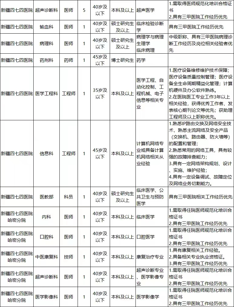 面向社会公开招聘,符合岗位条件的应聘人员均可报名应聘。具体岗位条件详见《新疆四七四医院面向社会公开招聘岗位表》(附件1)