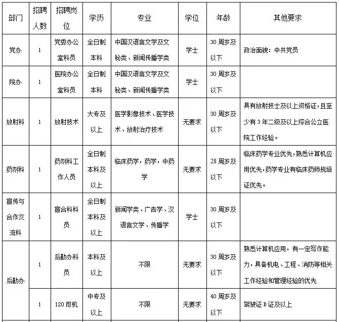 根据我院人才及发展需要,现面向社会公开招聘20名工作人员,具体如下: