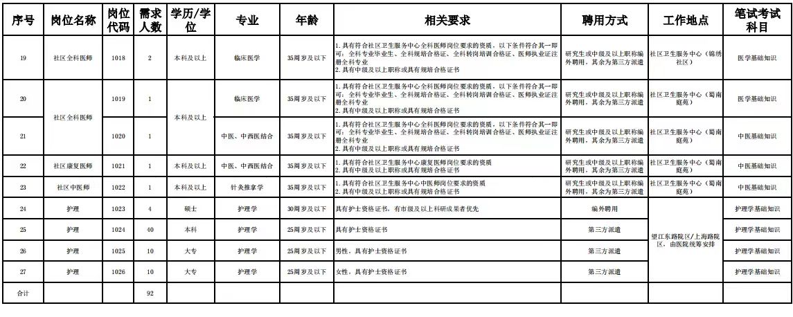 部分岗位要求四证合一,四证指毕业证书、学位证书、医师资格证书和住院医师规范化培训合格证书。部分岗位要求具有医师资格证或相关岗位资格证书,含截止报名时已通过考试,能提供成绩合格证明者。部分岗位要求具有住院医师规范化培训合格证书,含2024年可通过住院医师规范化培训结业考试并取得结业合格证书者。部分岗位要求专业方向的,需提供方向证明。医师岗位要求具有医师资格证。