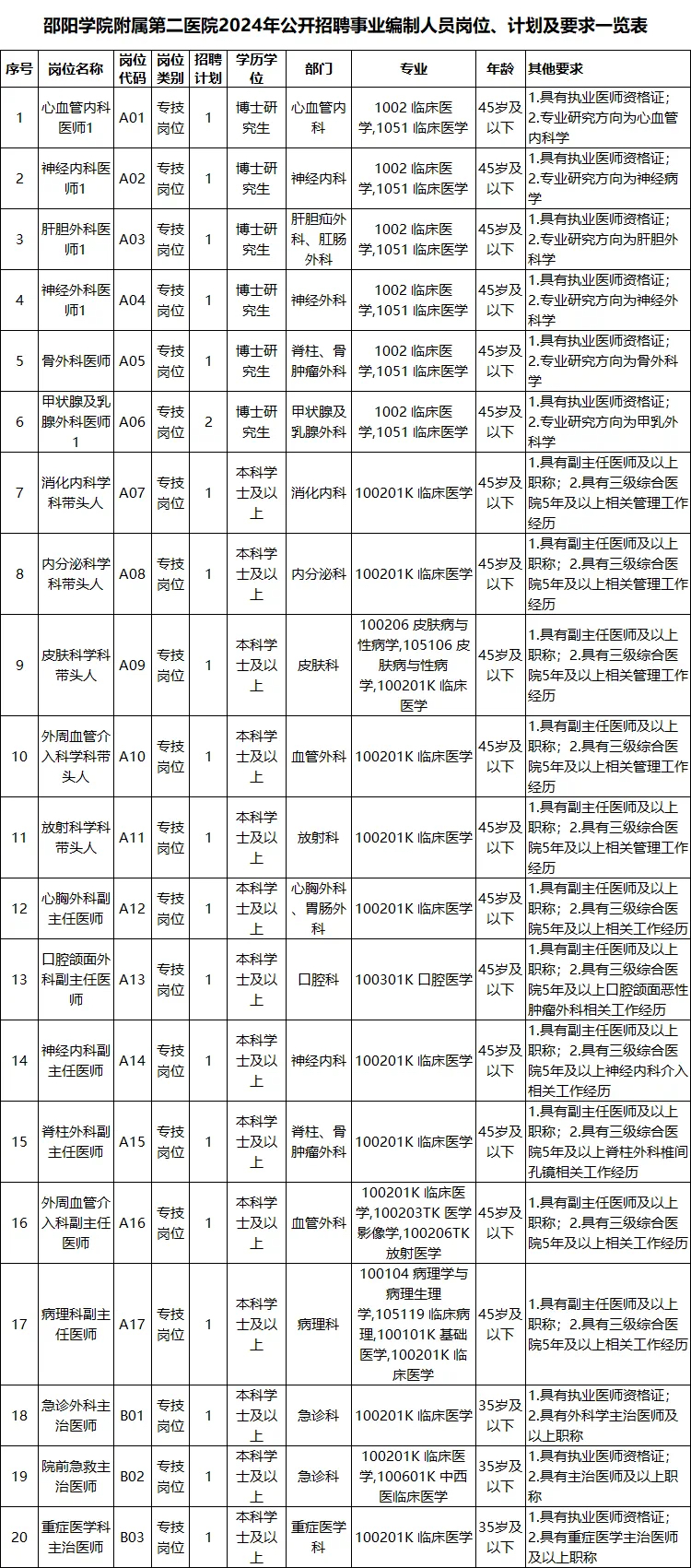 招聘信息通过湖南省人力资源和社会保障厅网站(http://rst.hunan.gov.cn/)、邵阳学院网站、邵阳学院附属第二医院网站面向社会公开发布。
