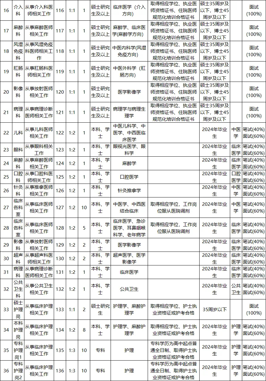 3.专科学历:仅护理专业招聘专科学历人员,要求为高中起点普通全日制2024年专科毕业生,须具有护士资格证。