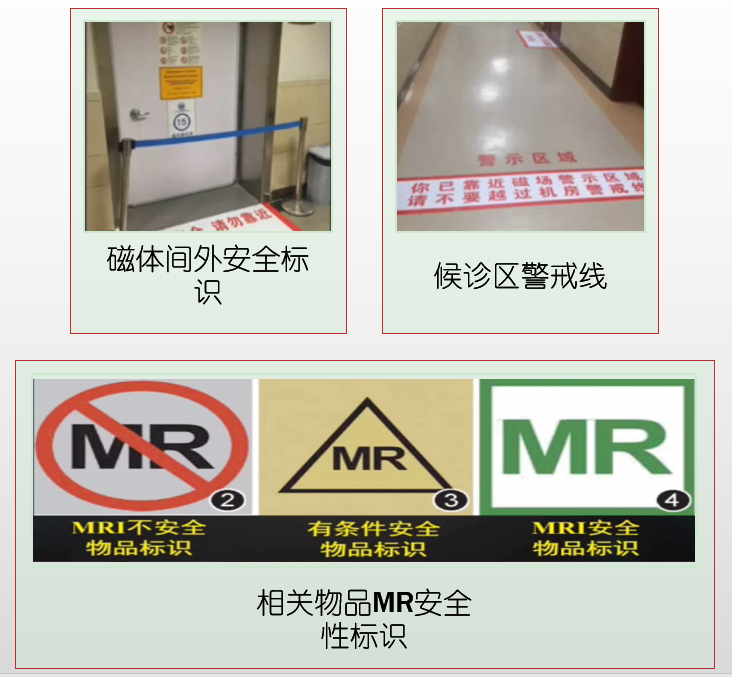 每个磁共振检查室外都会有安全标识,我们需要学会辨认。