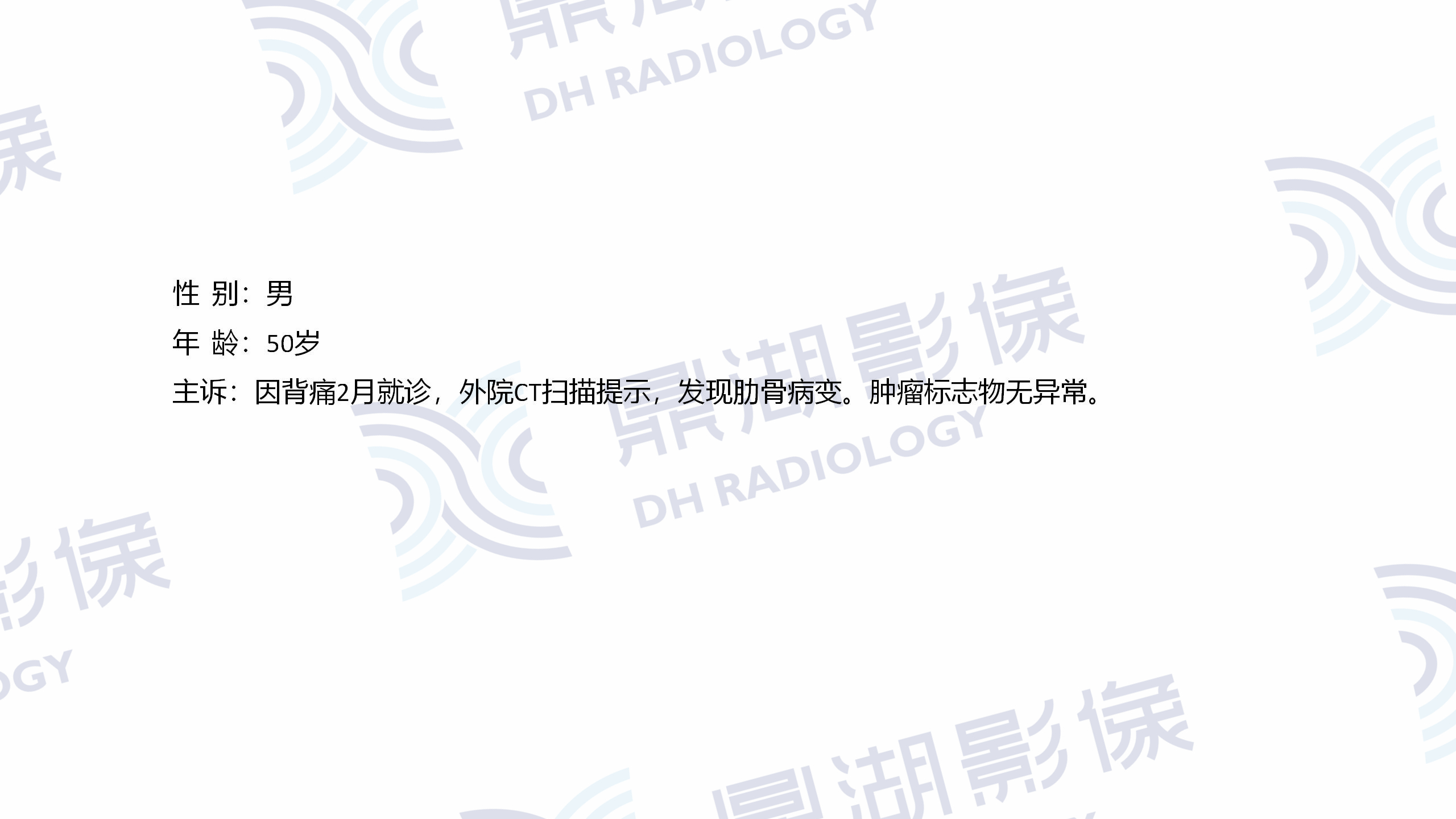背痛2月就诊,外院CT扫描提示,发现肋骨病变。肿瘤标志物无异常。