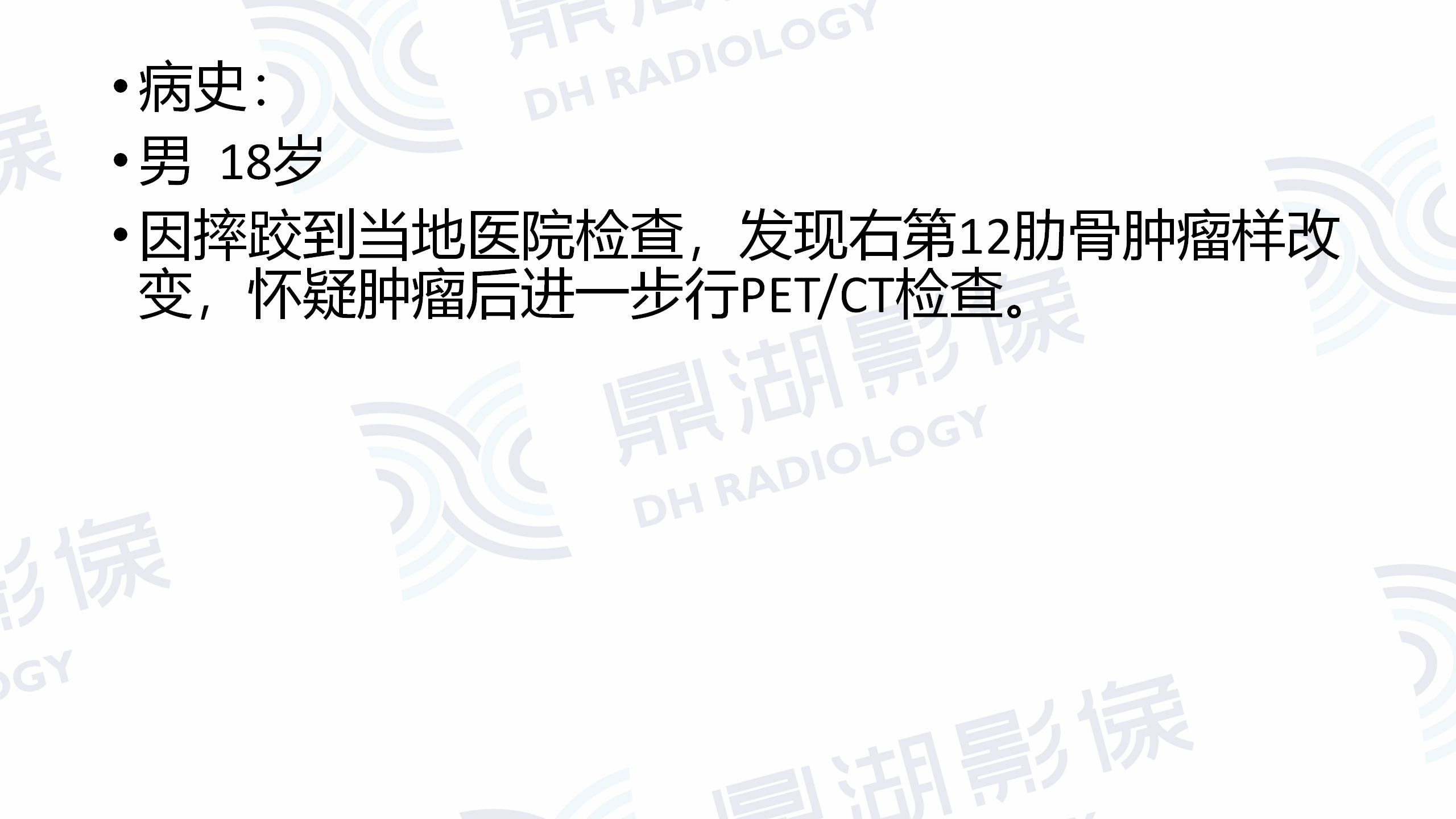 因摔跤到当地医院检查,发现右第12肋骨肿瘤样改变,怀疑肿瘤后进一步行PET/CT检查。