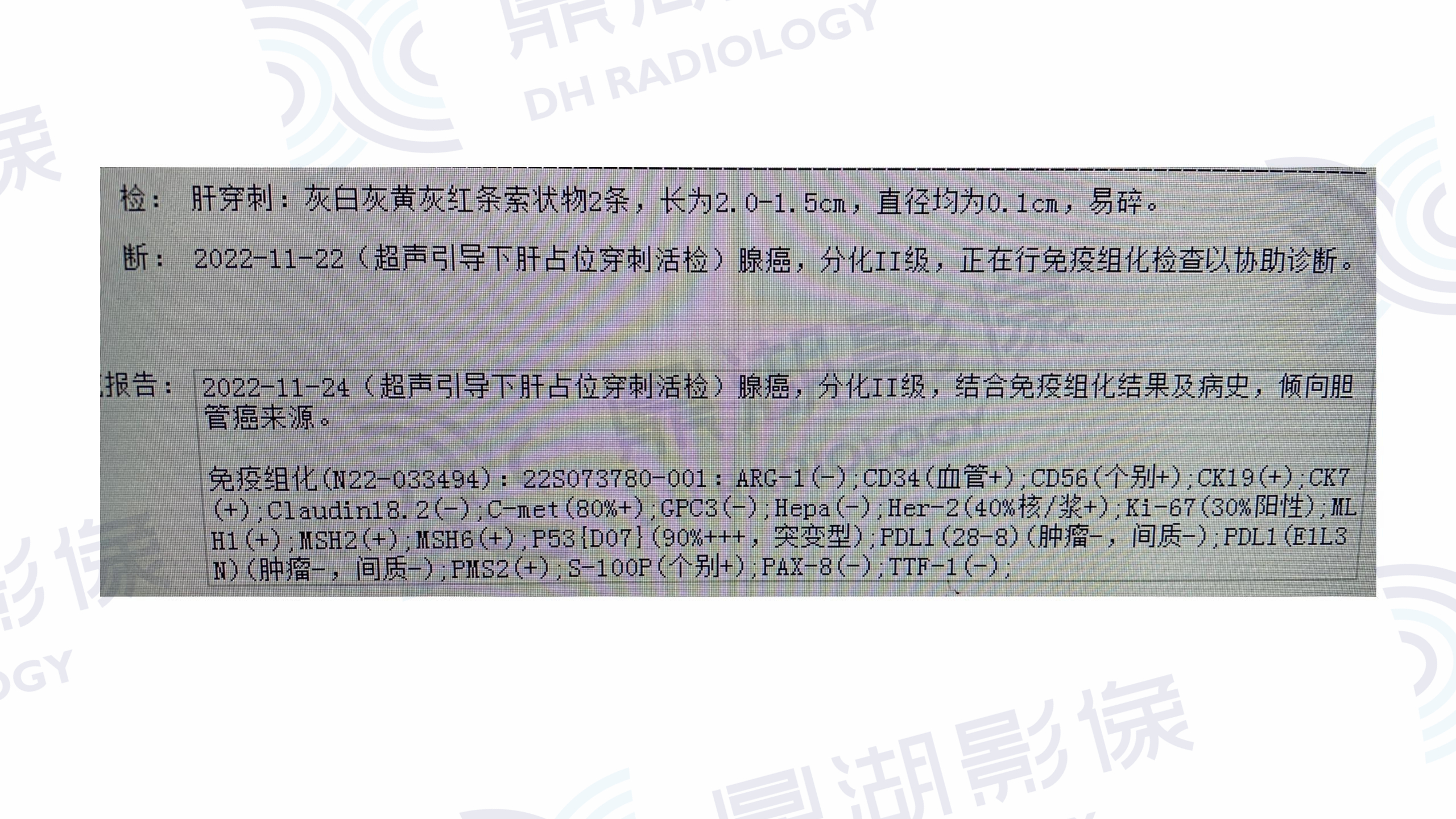体检B超发现肝占位,肿瘤标志物CA199:65.51U/ml。数年前因胃部癌前病变行黏膜剥脱术,否认慢性乙肝病史,无发热表现。