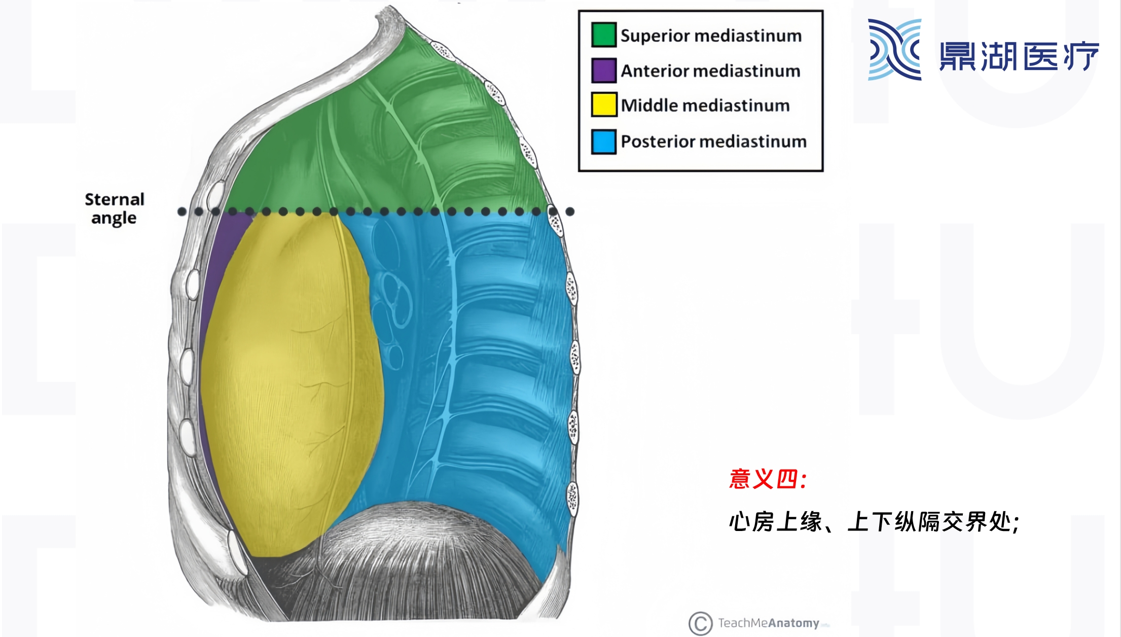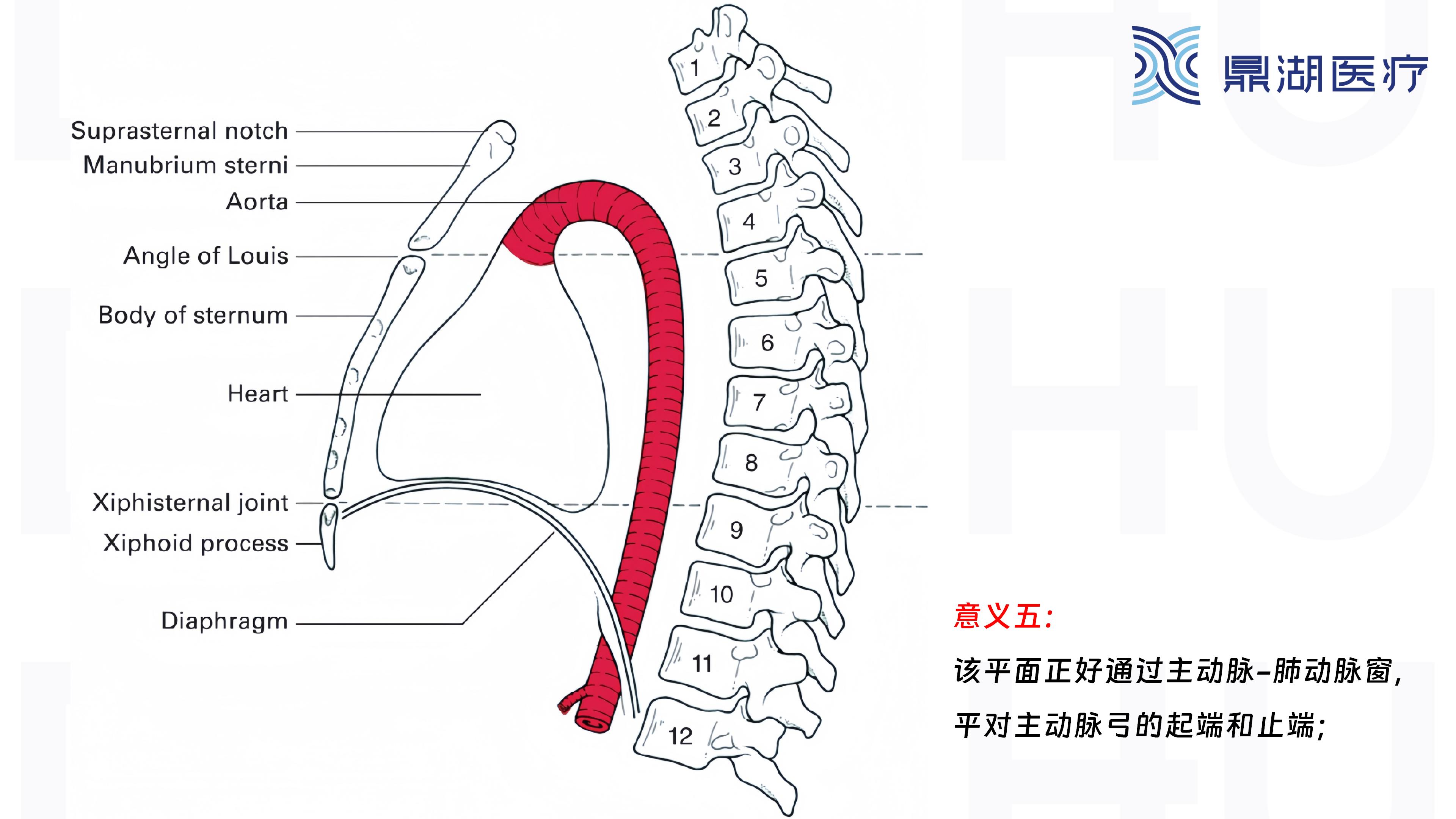 13.是上、中纵隔的分界平面,后方平对第4胸椎体下缘;