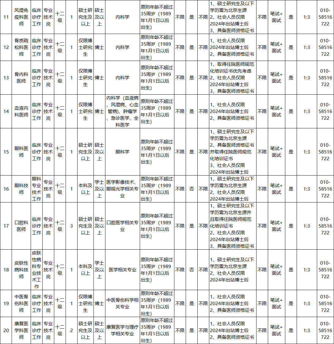 根据《关于印发<北京市事业单位公开招聘工作人员实施办法>的通知》(京人社专技发〔2010〕102号)、《关于进一步规范事业单位公开招聘有关问题的通知》(京人社专技发〔2012〕247号)、《北京市引进毕业生管理办法》(京人社毕发〔2021〕22号)等文件精神,结合医院工作,现将公开招聘事宜公告如下: