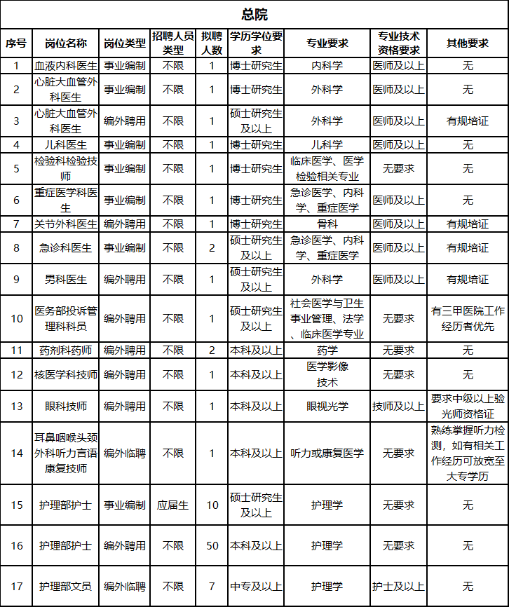 应聘要求有规培证的岗位者需取得专业型学位或经过住院医师规范化培训并于2024年8月前取得合格证书;