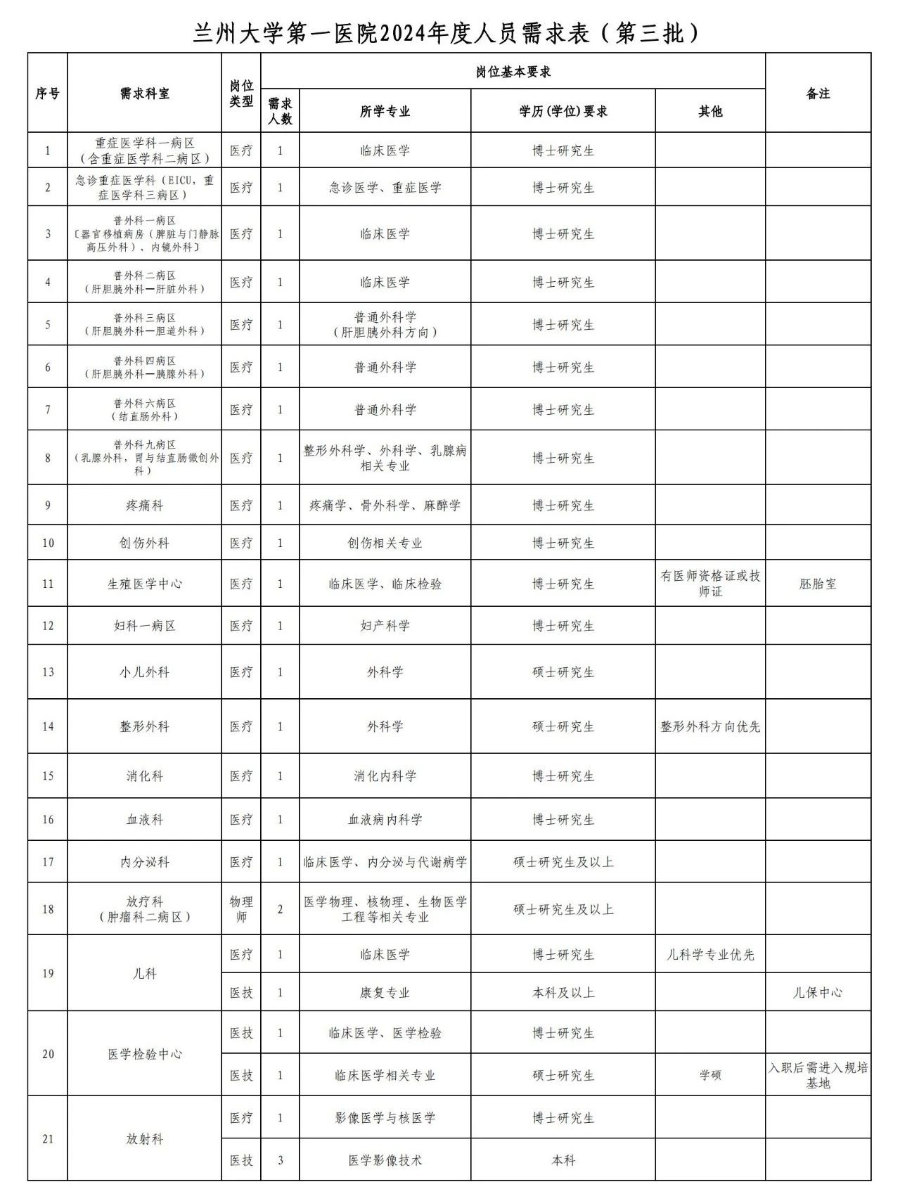 招聘影像岗位11人!兰州大学第一医院2024年度招聘(第三批)