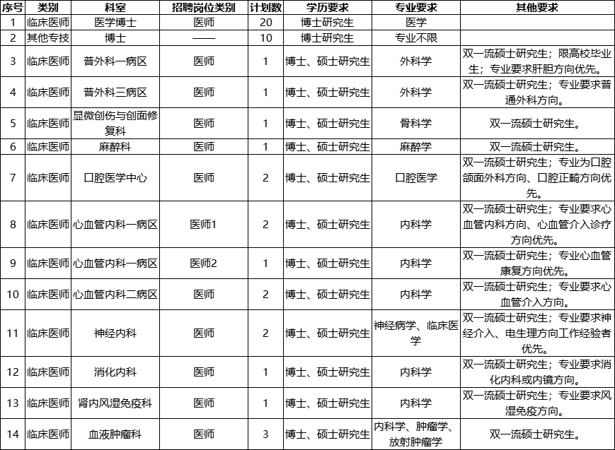 根据国家、省、市有关文件精神要求,结合我院工作需要,决定面向社会进行人才招聘。现将具体内容公告如下: