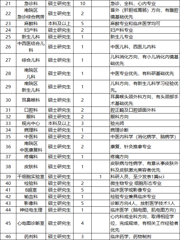 年龄40周岁以下,中级以上职称,具有市级医院对应专业5年以上临床工作经验优先。