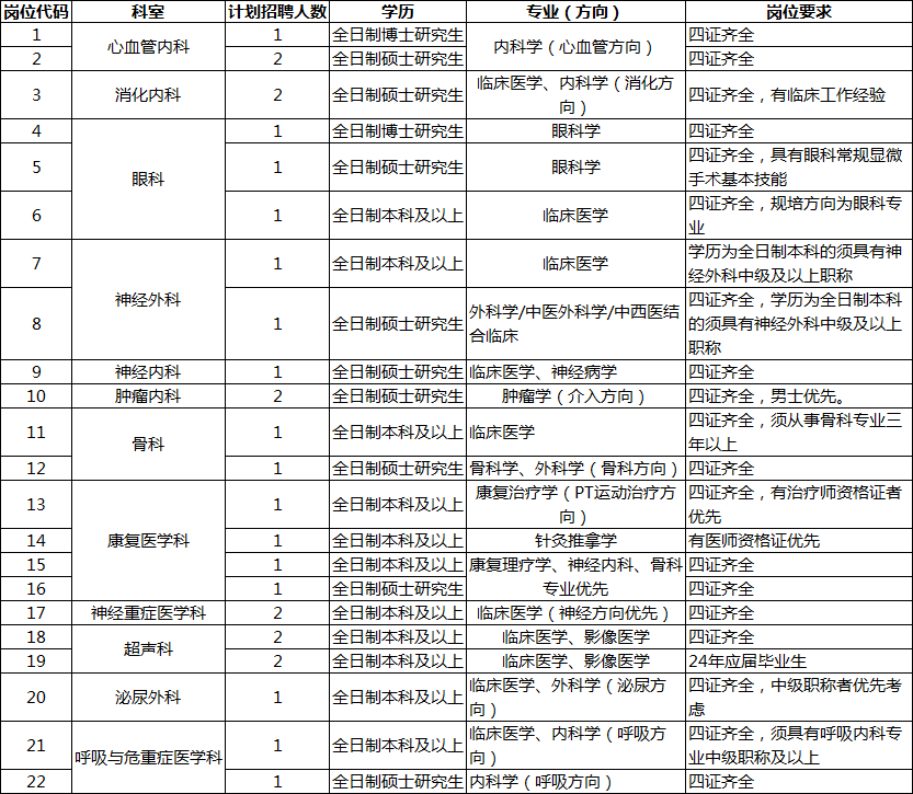根据医院实际,经医院党委研究,决定面向社会公开招聘工作人员50名。具体事宜安排如下: