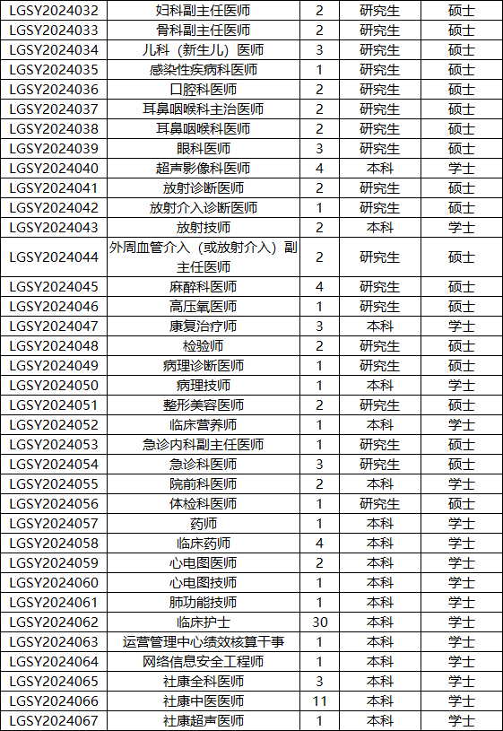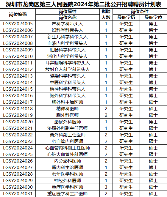 深圳市龙岗区第三人民医院2024年第二批公开招聘聘员及劳务派遣人员计划表