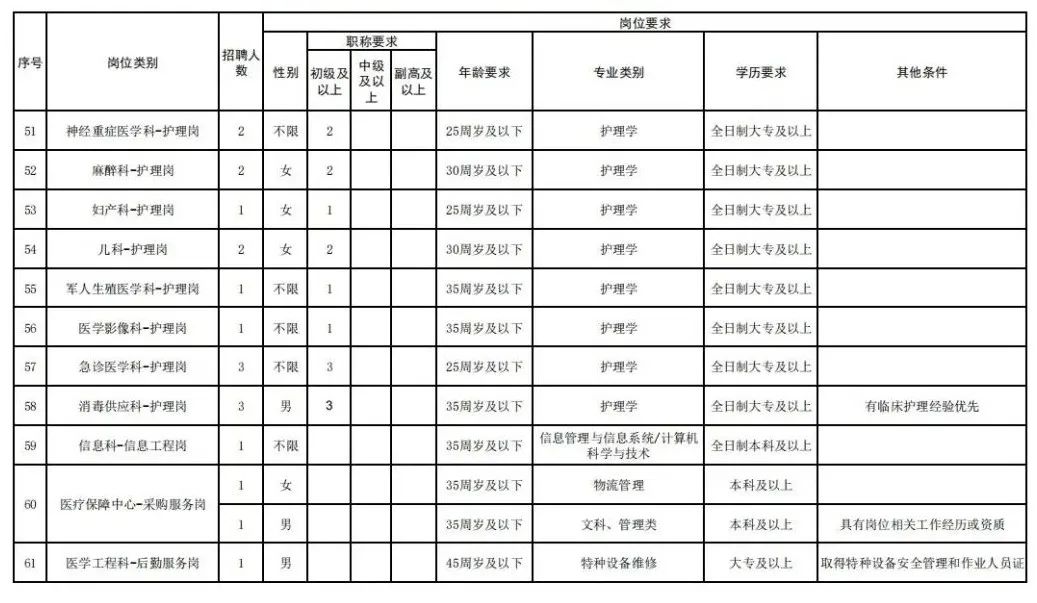 4.资格条件:医、药、护、技类岗位具有招聘岗位所要求的相应专业技术资格和执业资质(医技、护理岗位2024年应届毕业生可适当放宽)。