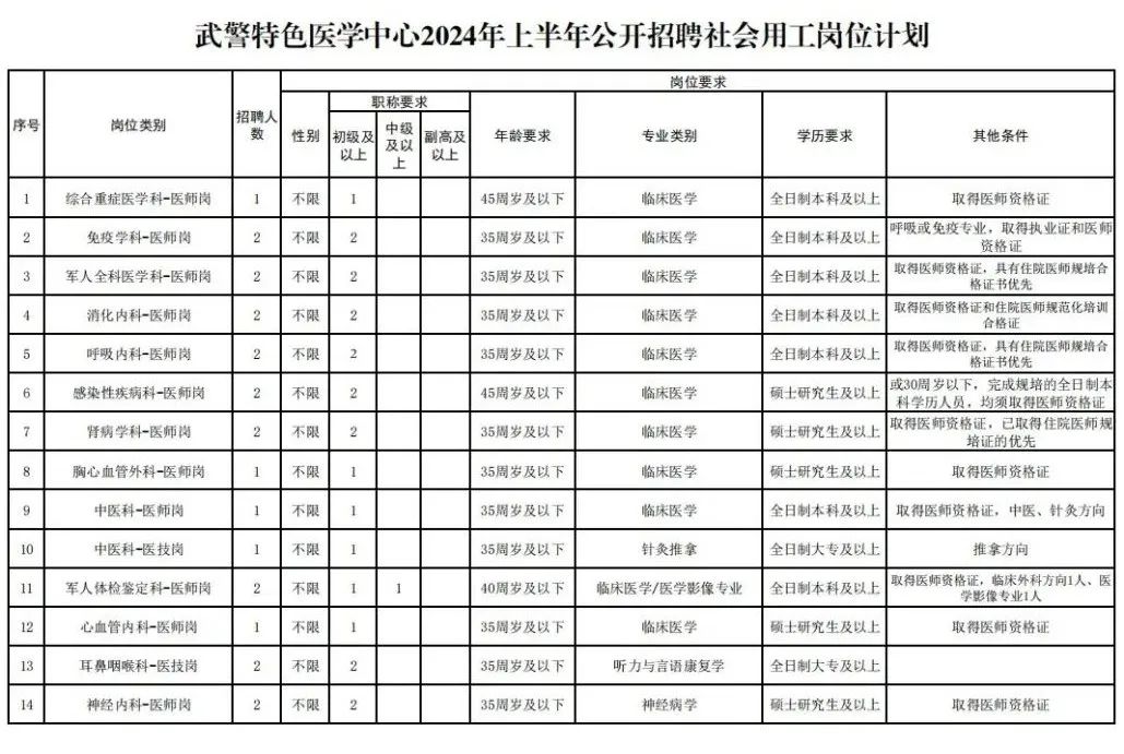 武警特色医学中心招聘超声医师2名、影像技师3名