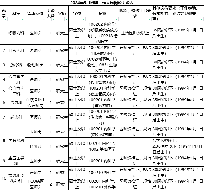 具体招聘的岗位、专业和人数,详见附件1《岗位需求表》。