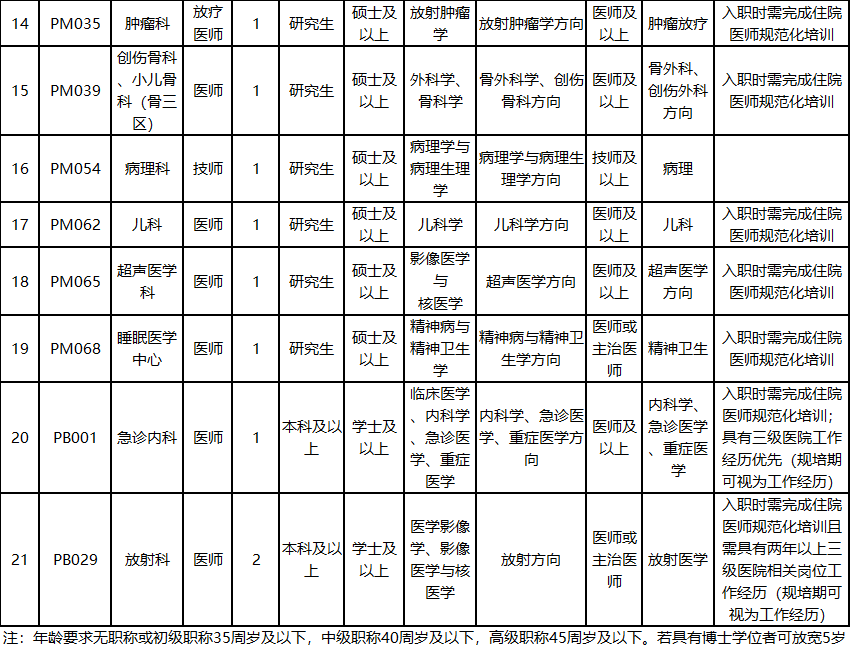 (2)学历、资历、年龄及专业要求详见附件1。