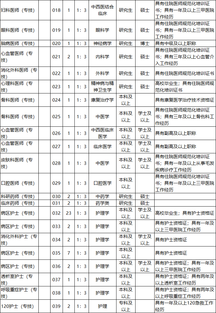 河北省中医院拟公开招聘工作人员145名。具体招聘人数和岗位条件详见《河北省中医院2024年公开招聘工作人员岗位条件表》(附件1),其中专业参考教育部《授予博士、硕士学位和培养研究生的学科、专业目录》、《普通高等学校本科专业目录》、《普通高等学校高职高专专业参考目录(试行)》等设置。