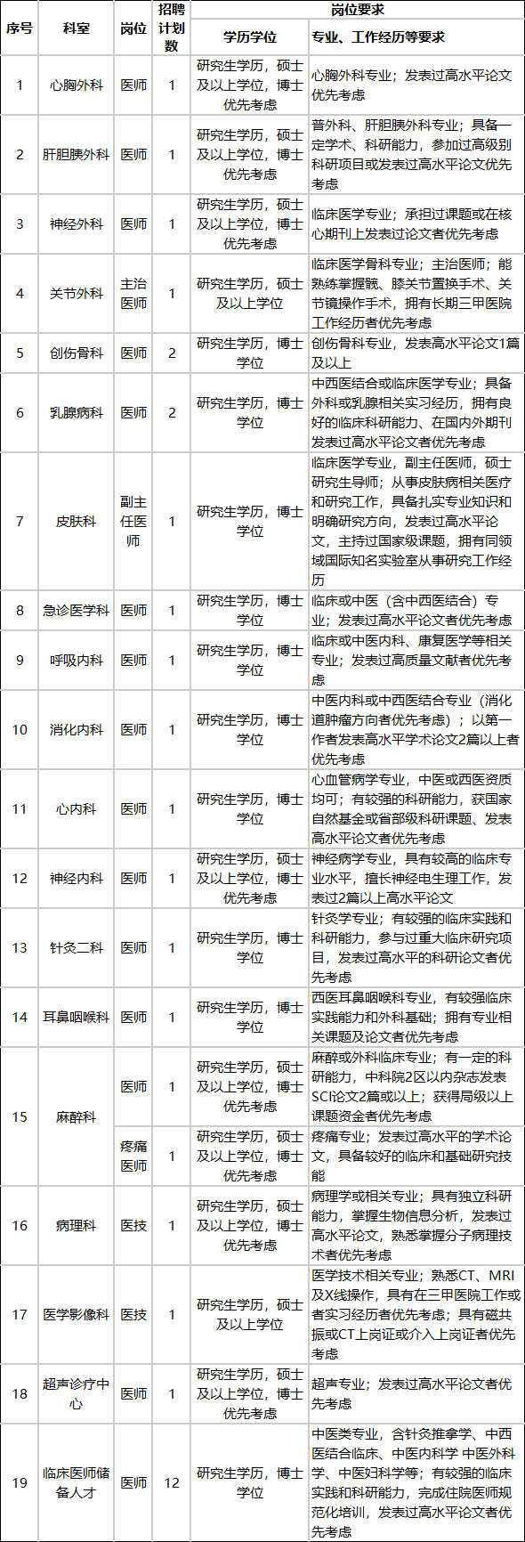 具有三甲医院工作经验,科研能力强者优先考虑。