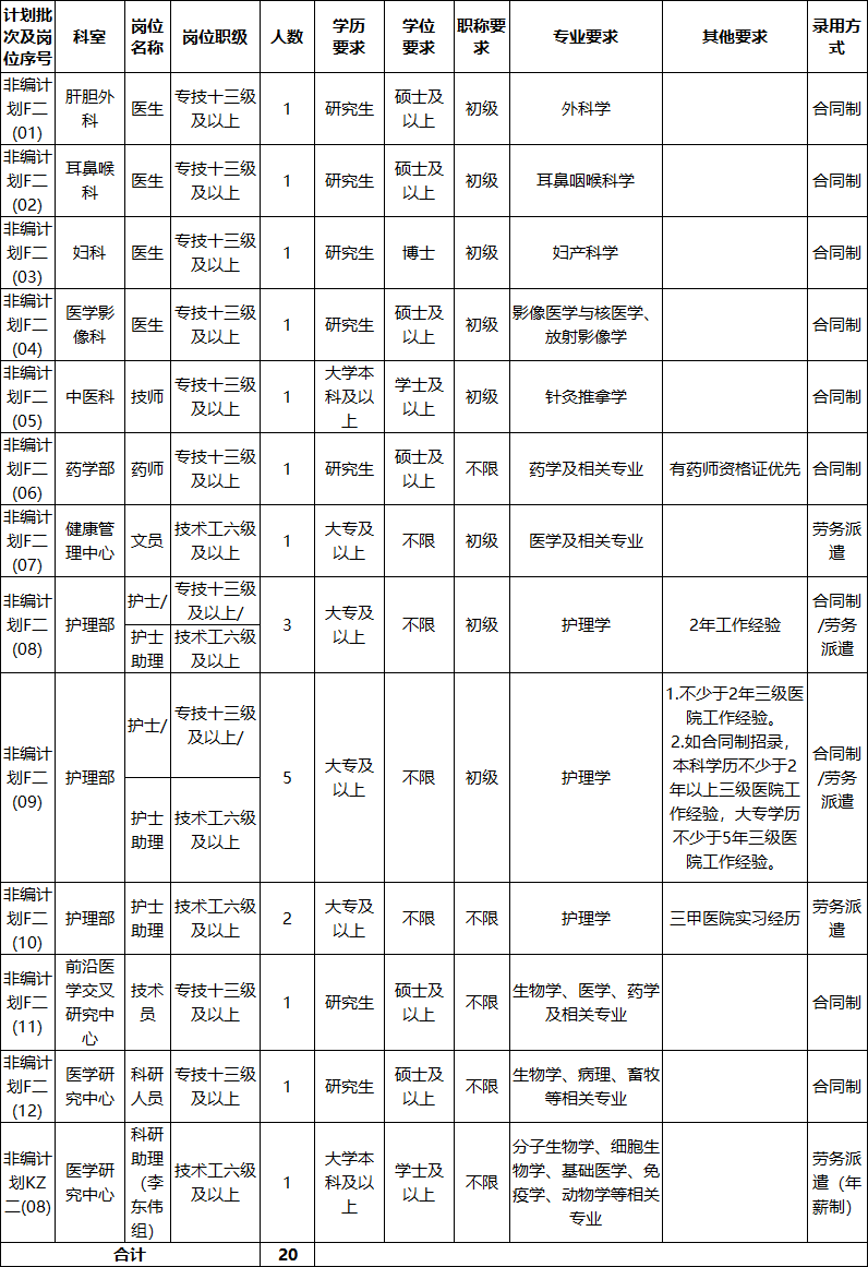 因我院业务发展需要,现急需招聘工作人员,具体通知如下:
