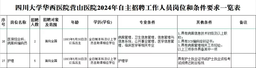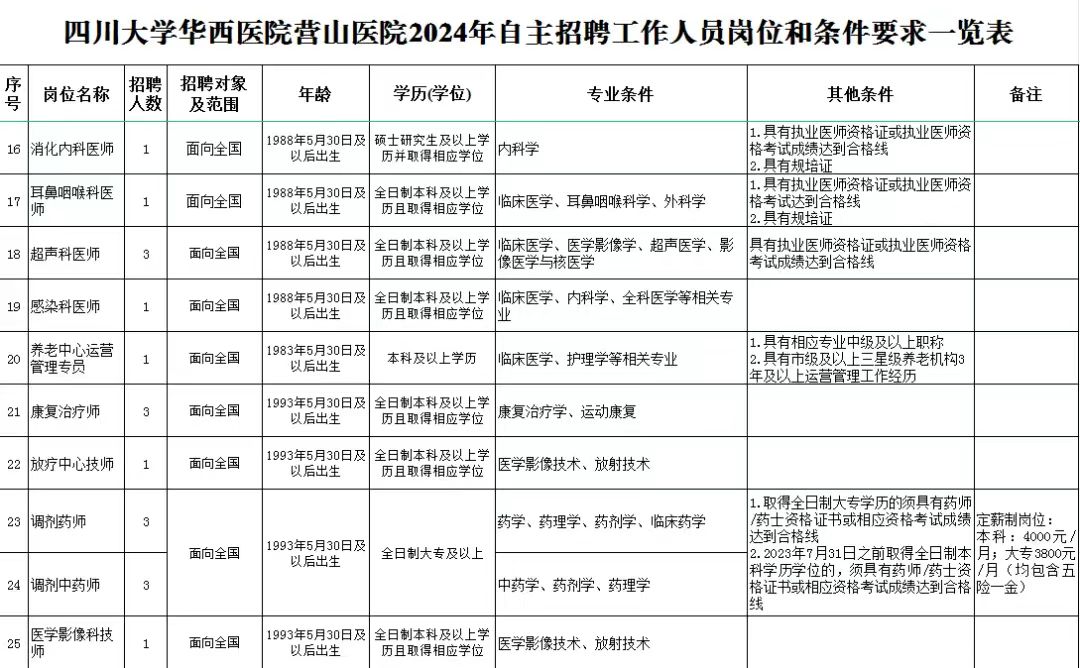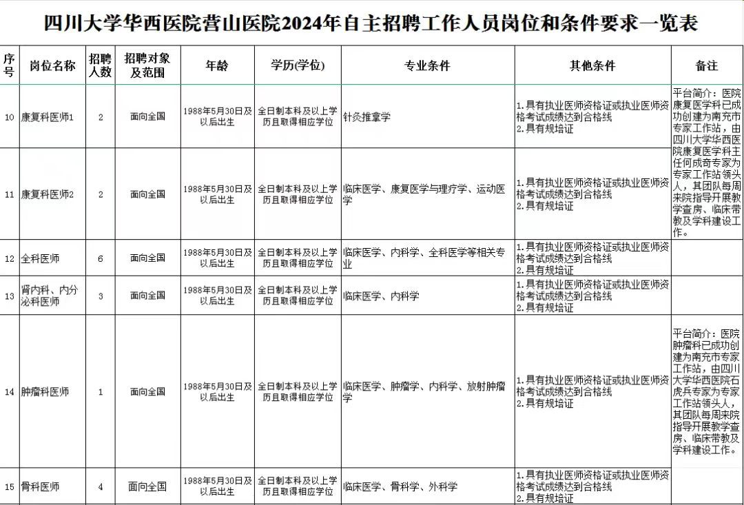 地址:四川大学华西医院营山医院行政楼二楼人力资源部(营山县华西大道100号)