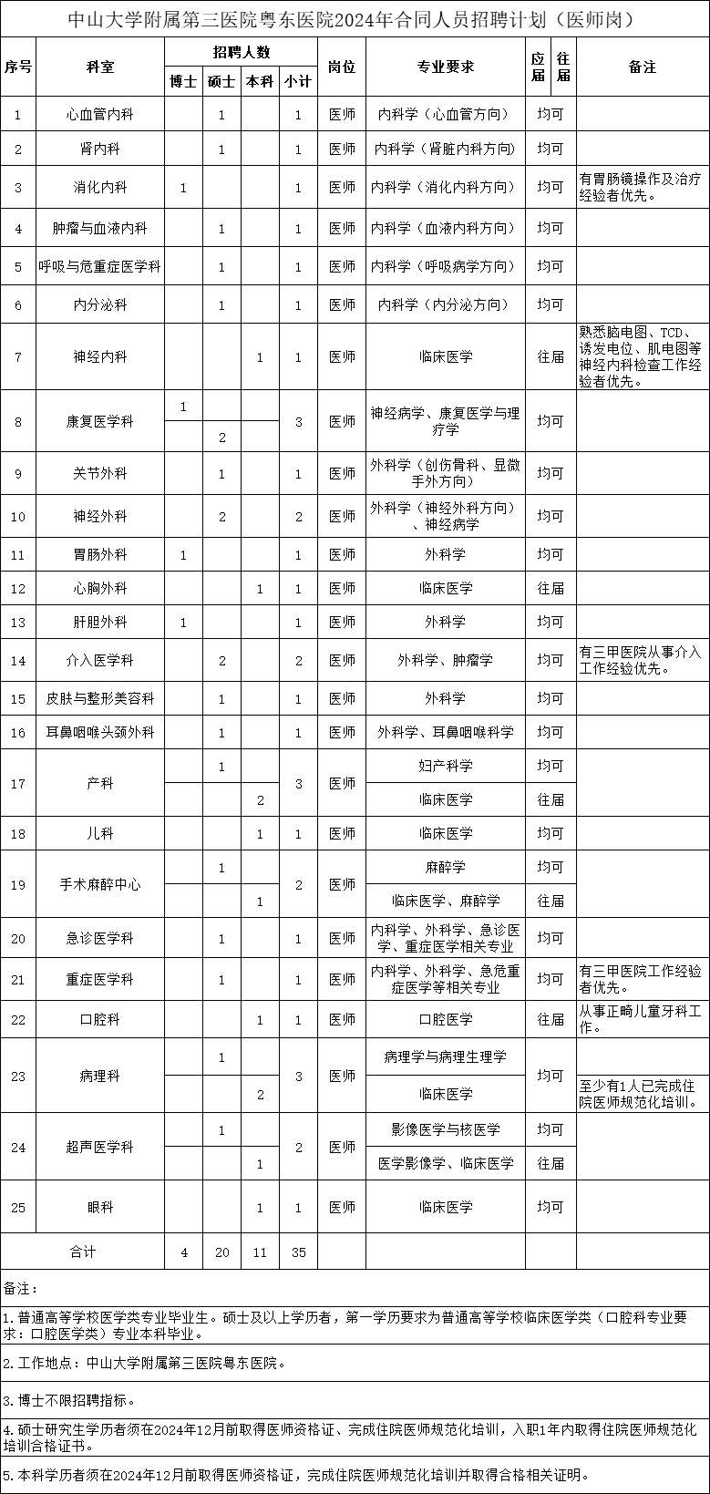 中山大学附属第三医院粤东医院招聘超声医师2名