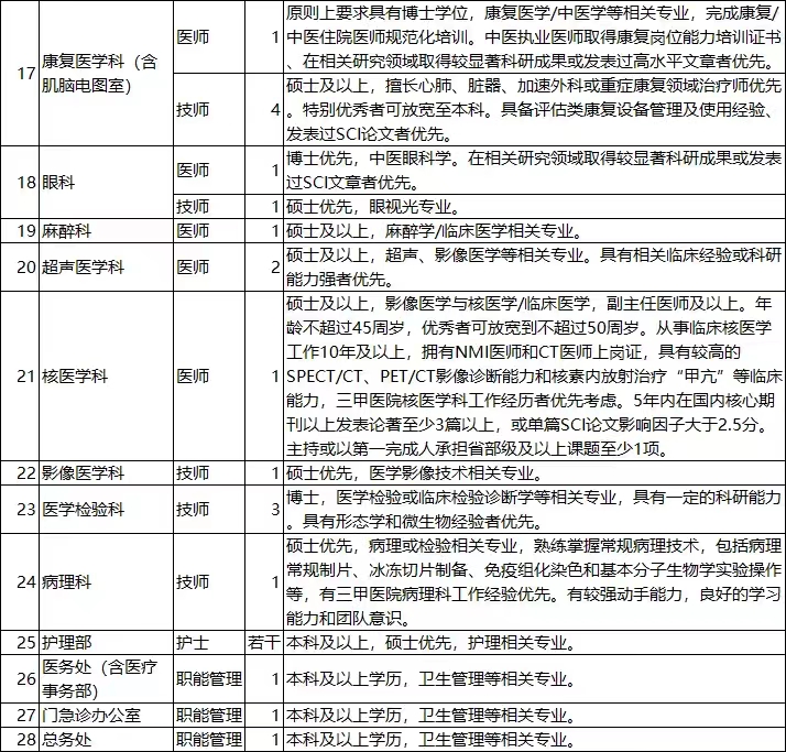2、临床岗位人员须持有医师资格证书和与岗位要求专业一致的住院医师规范化培训合格证,中医类专业要求博士学位。