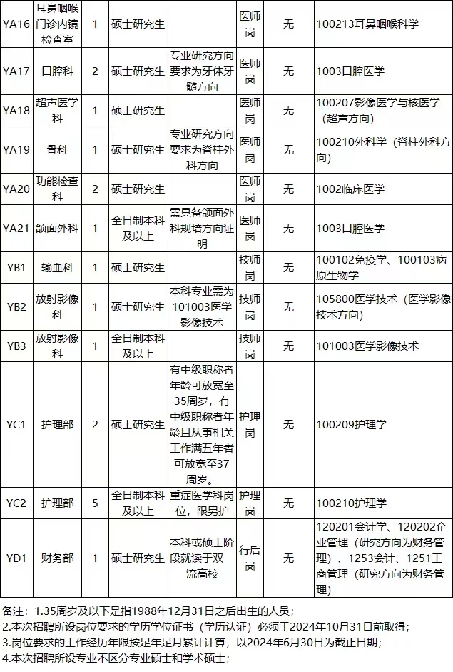 医师岗位:本科学历具有规培证者,年龄放宽到28周岁及以下。
