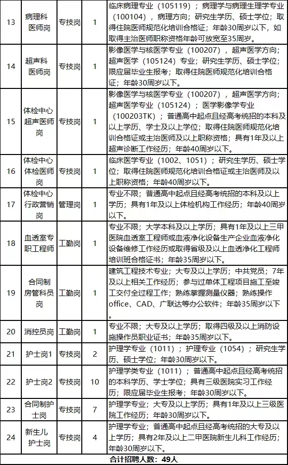 8、报考医师、护理岗位的考生需取得相应的执业资格,2024届普通高校毕业生应于2024年11月30日前取得资格证。要求取得住院医师规范化培训合格证的岗位,2024年规培结束但未参加结业考试的人员可报考,报考人员应于2024年11月30日前取得合格证。特殊情况见岗位条件栏。