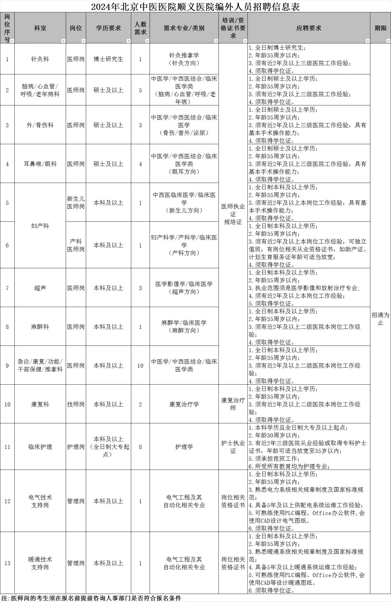 根据北京中医医院顺义医院2024年编外人员招聘需求,现招聘编外合同制工作人员,相关事项公告如下: