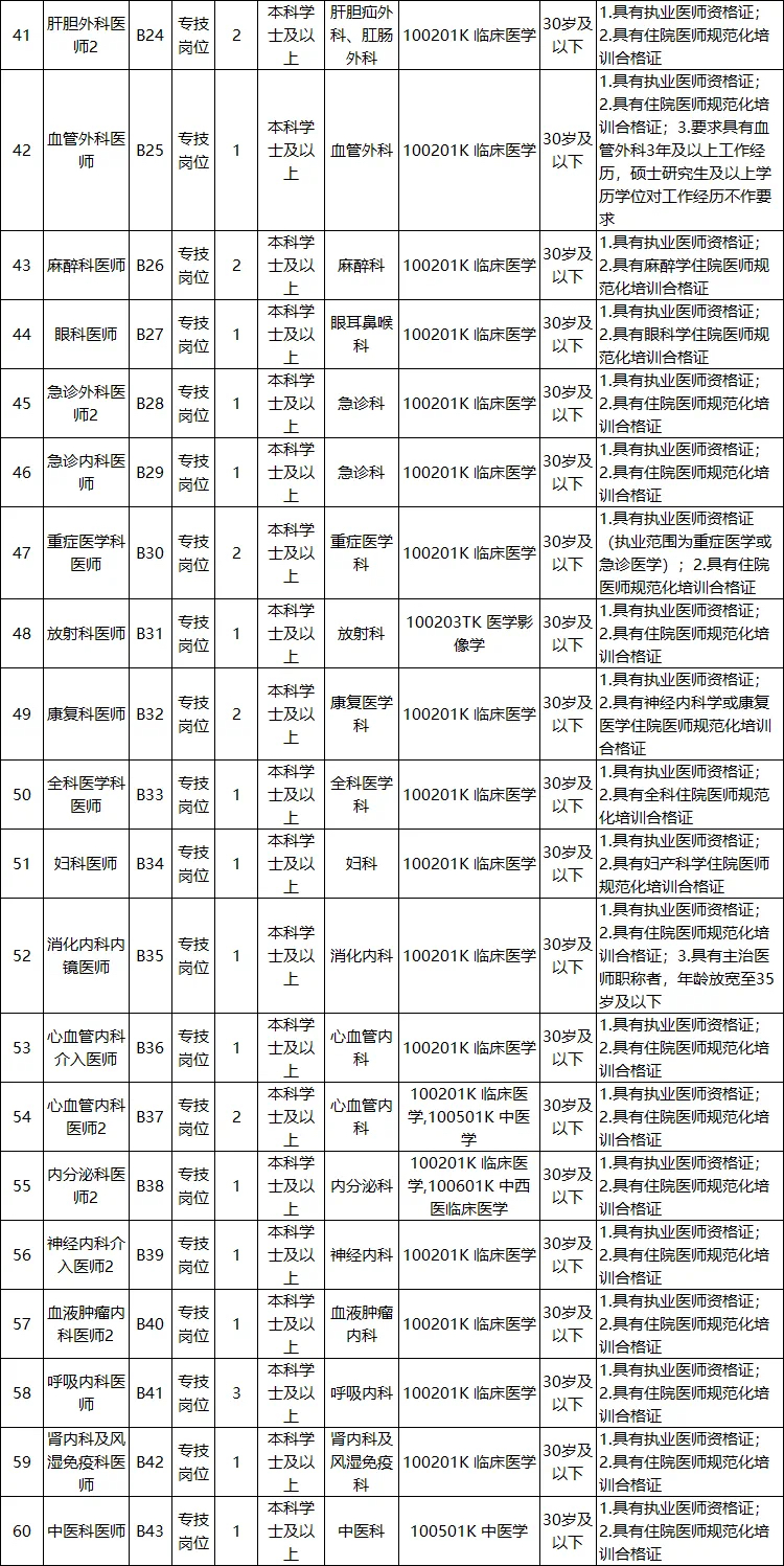 (7)应聘临床医师岗位者须提供对应岗位要求专业的住院医师规范化培训合格证(或成绩合格证明),已获主治医师及以上专业技术资格证者除外;