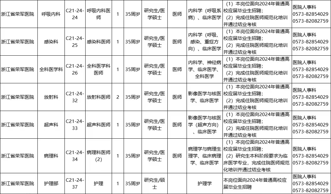 浙江省荣军医院招聘放射医师2名、超声医师1名