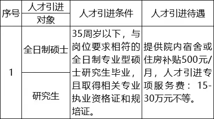 (二)医师类岗位凡符合《惠州仲恺高新区人民医院人才引进方案》的,同时享受人才引进相关待遇。详见下表: