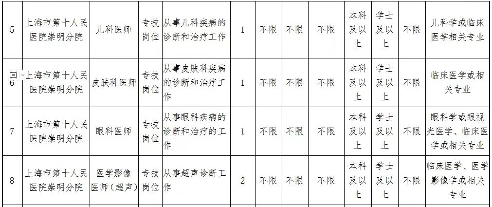 上海市第十人民医院崇明分院招聘超声医师2名。放射医师2名