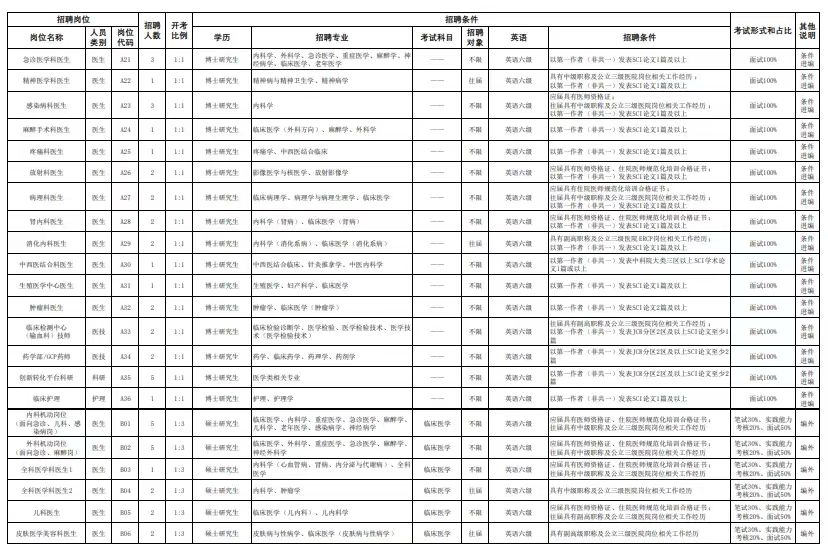 3.适应岗位要求的身体条件,能从事临床、教学、科研一线工作。