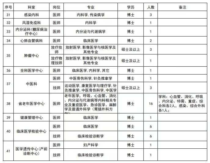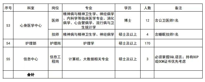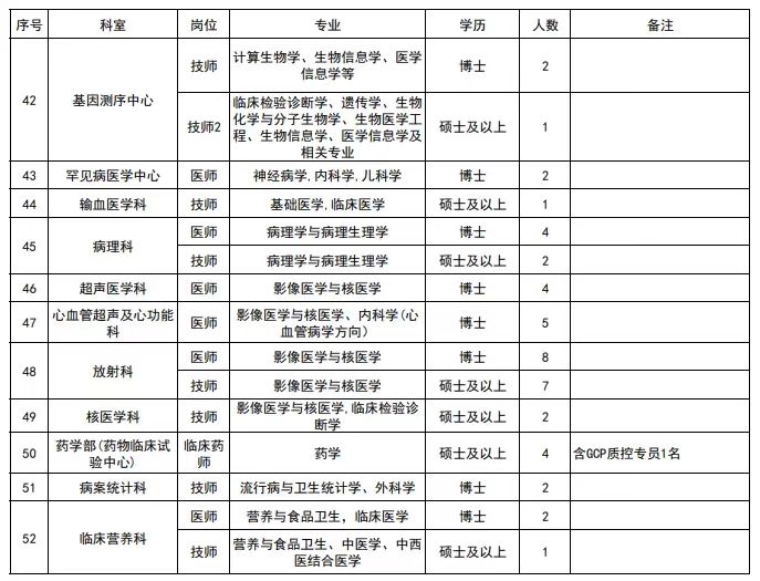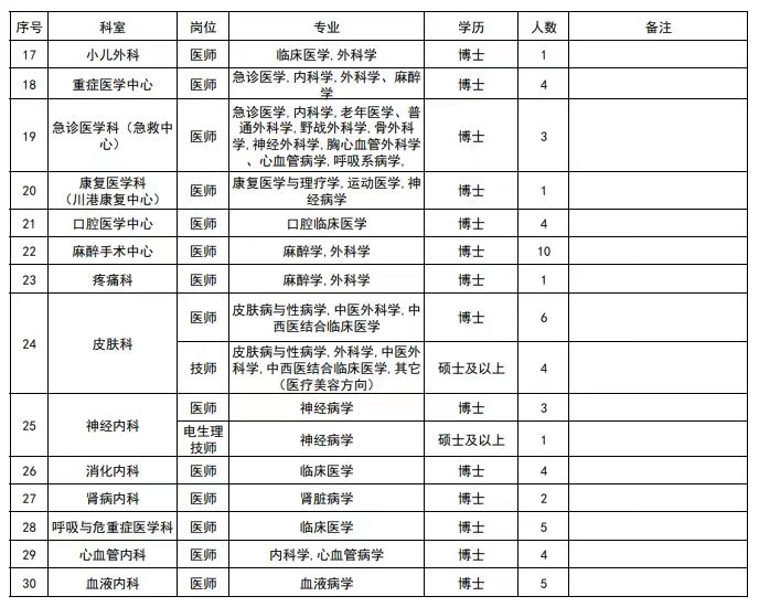 面向全国招聘:医师177人、技师46人、药师4人、护理人员170人、信息工程师3人。